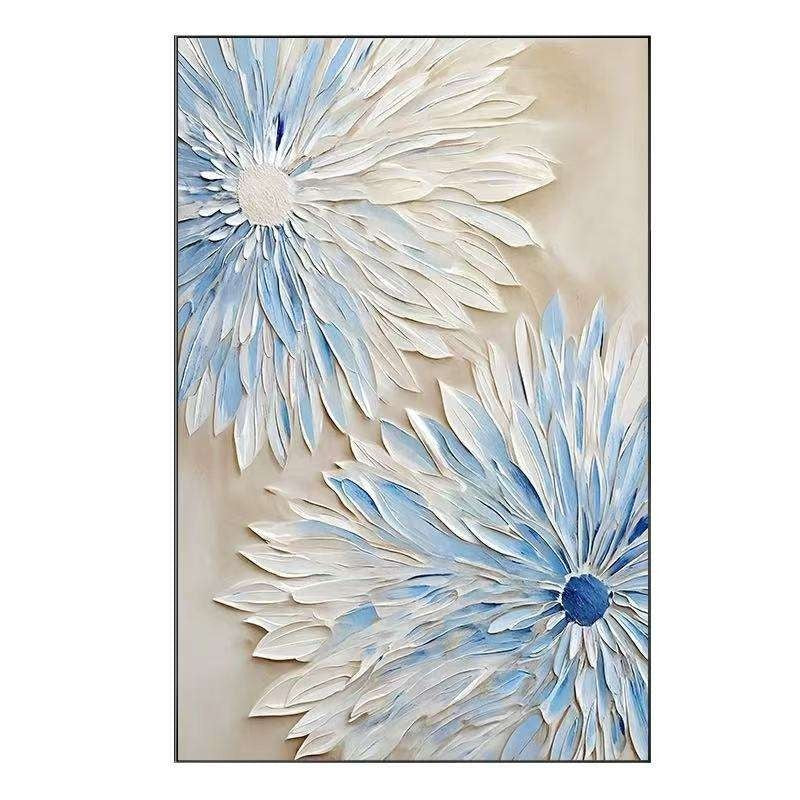 Abstract Blue White Flower Oil Painting On Canvas Modern Textured Wall Art Hand Painted Blooming Flower Bedroom Home Decor